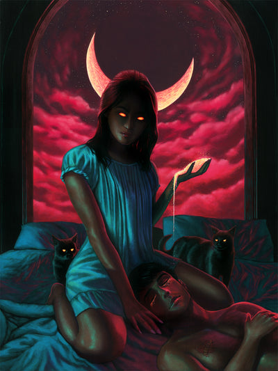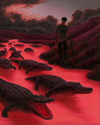 Born in Southern California, Casey Weldon spent the majority of his formative years there graduating from the Art Center College of Design in Pasadena. After operating a studio out of Las Vegas, Weldon relocated to New York, then California, and now Portland where he works as a full time artist. His fine art, imbued with a sumptuous illustrative quality, is indicative of his profession. Weldon mixes iconography of today and the past to evoke a sense of humor, nostalgia, fantasy and even melancholy within the viewer. His pallet and haunting subjects recall the Surrealist masters like Breton and de Chirico.