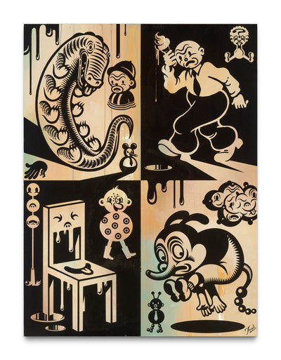 His retro stylized art is reminiscent of the 1930s and best described as “reinvented pop art” and rooted from an award winning illustration background. His art has a low brow/high brow appeal. It can be seen in galleries around the world such as Lazarides (London), Jonathan Levine Gallery (NYC), Yves LaRoche (Montreal) and The Andy Warhol Museum.