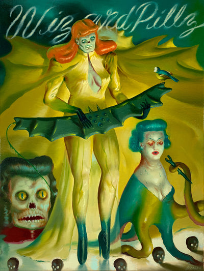 Ryan Heshka was born in Manitoba, Canada, and grew up in Winnipeg. Fueled by long prairie winters, he spent a lot of his childhood drawing, building cardboard cities and making super 8 films. Early influences that persist to this day include antiquated comics and pulp magazines, natural history, graphic design and music, movies and animation. Formally trained in interior design, he is self-taught as an artist. His illustrations have appeared in Vanity Fair, Playboy, Wall Street Journal, Esquire, the New York Times, on numerous book and album covers, and on the cover and interiors of BLAB!. He has been selected to appear in American Illustration, Society of Illustrators, and Communication Arts. In addition to gallery shows across North America and Europe, he has written and illustrated the "Mean Girls Club" comic book and graphic novel, as well as the recently self-published comic books "Frog Wife" and “Pleasure Planet”. He lives in Vancouver, Canada with his wife Marinda and daughter Roxy.