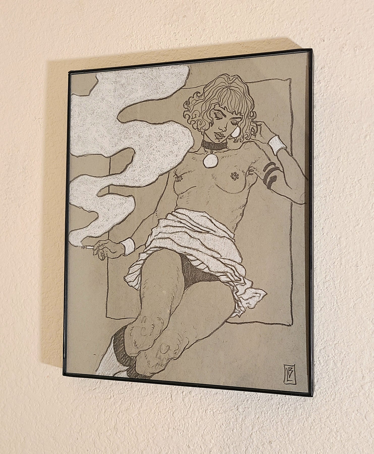 Title: GloriaMedium: graphite and white charcoal on grey toned archival drawing paper in frameSize: 8x10