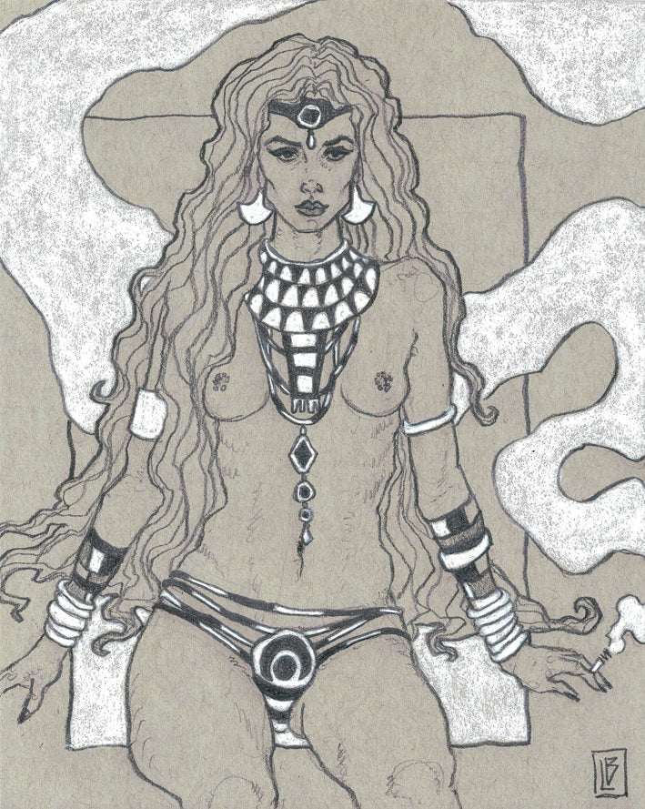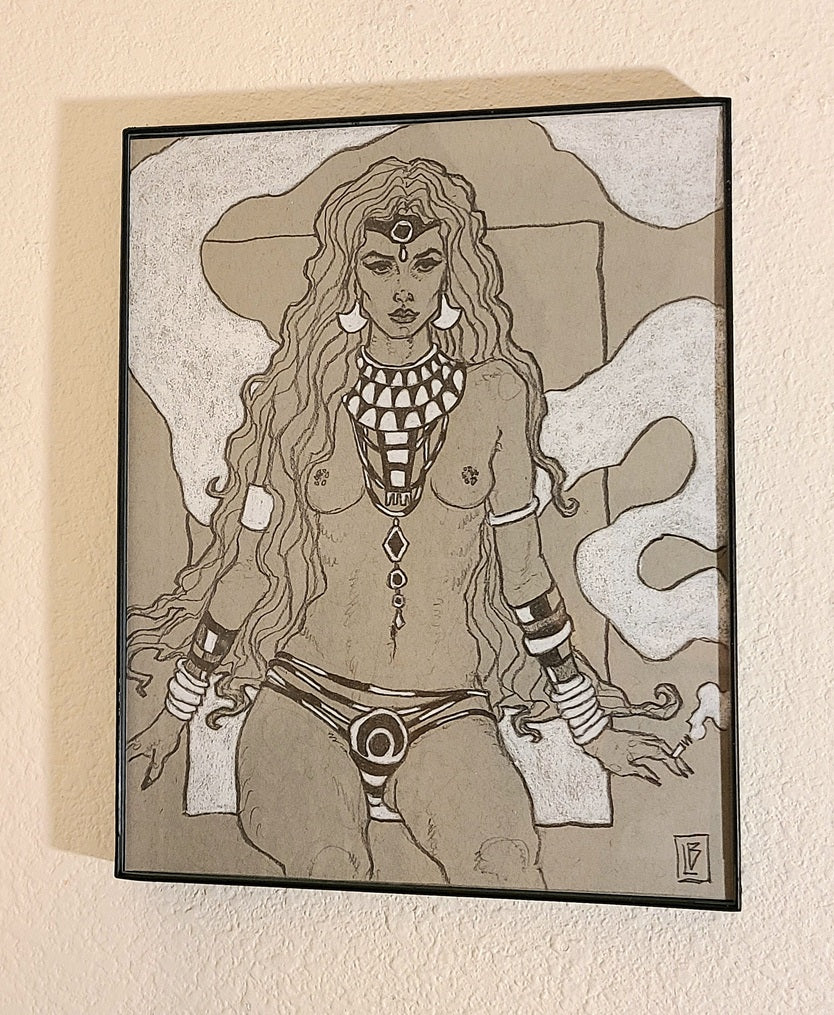 Title: DelilahMedium: graphite and white charcoal on grey toned archival drawing paper in frameSize: 8x10