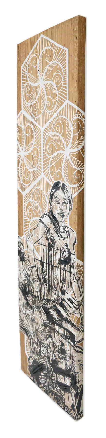 Silksceen, acrylic gouache and cut paper on wood