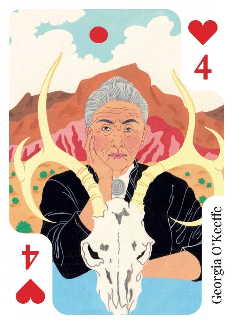 Did you know that the four suits of a modern-day deck of playing cards once represented the four classes of society in medieval France? Hearts represented the clergy, Spades the nobility, Diamonds the merchants, and Clubs the peasants. Author Lydia Miller has reimagined these suits as Seers, Warriors, Influencers, and Dissenters, curating the fifty-four women artists featured based on these categories. Laura Callaghan's stunning, detail-packed illustrations will make you want to flip open the accompanying guide to learn about each artist.