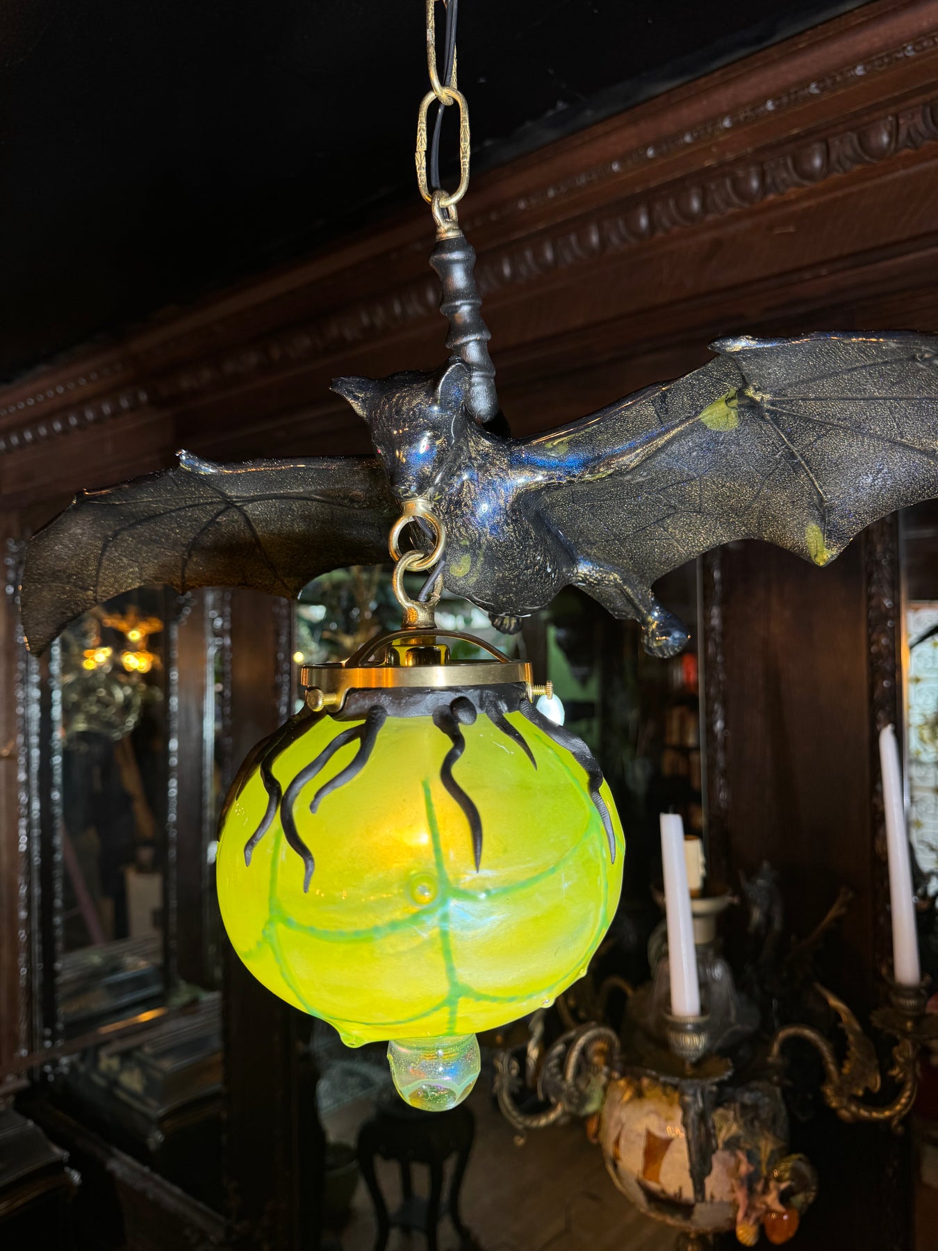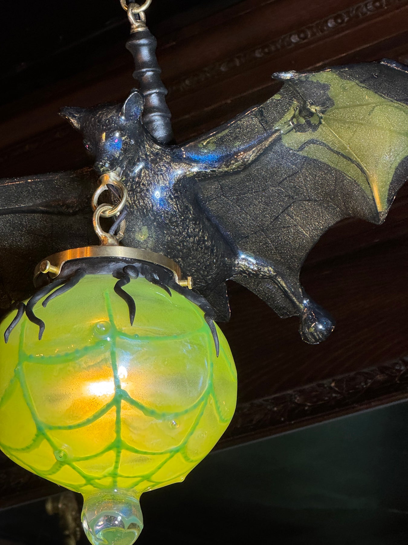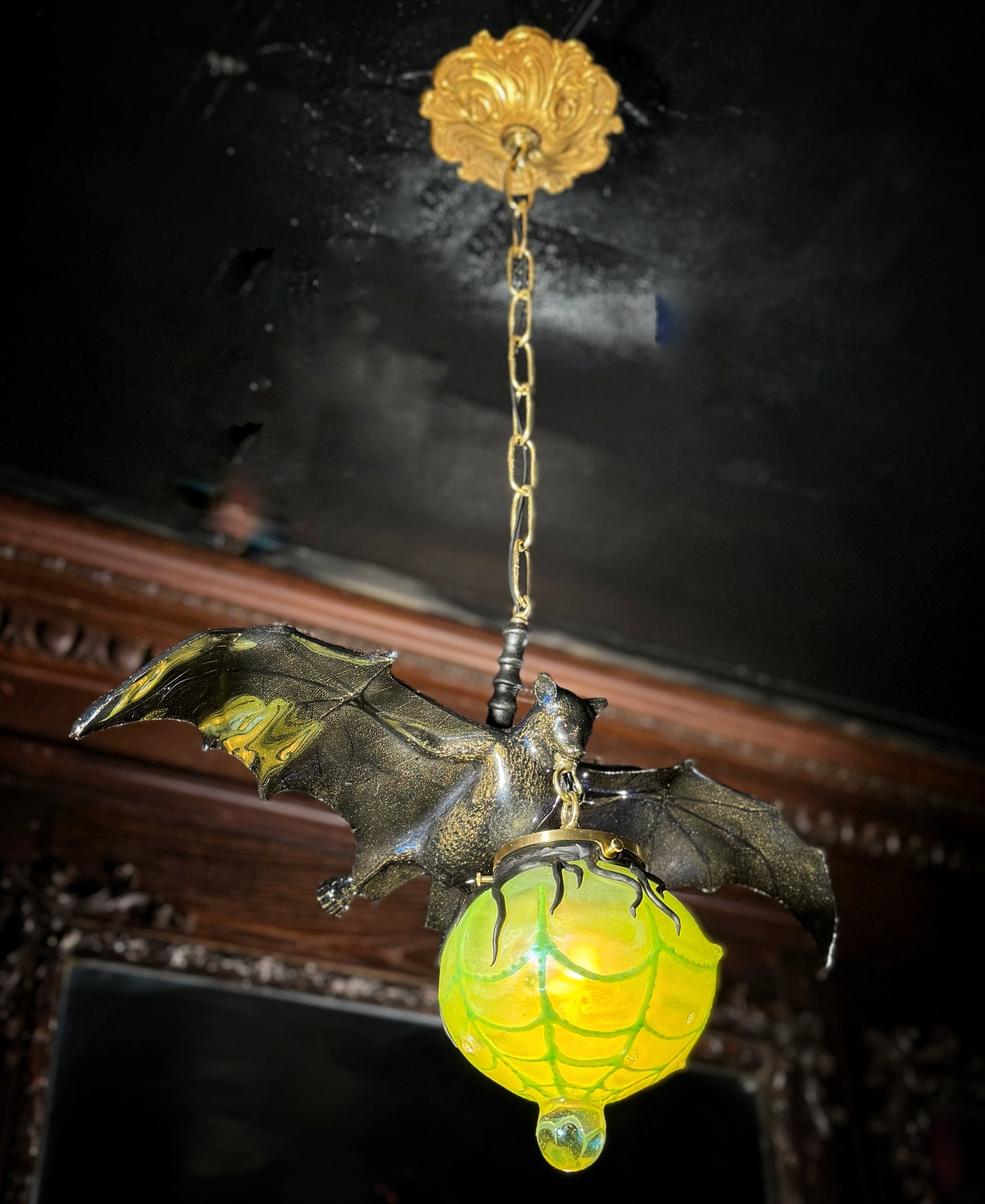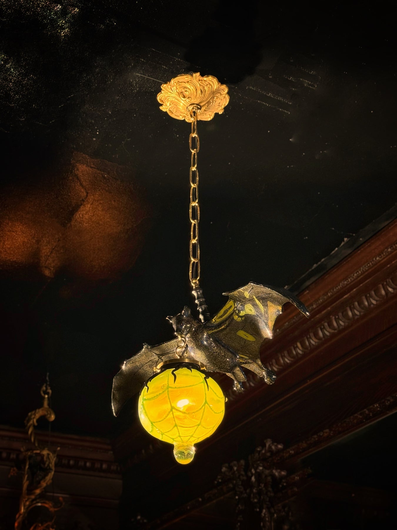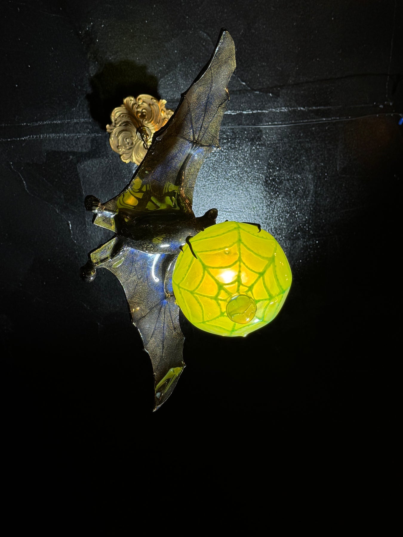 “Garlands” ( Bat Foyer Lamp With Glowing Custom Made Web Shade) 2025